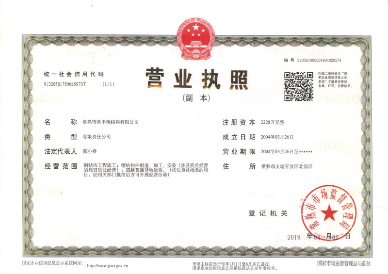 常熟市常豐鋼結構有限公司,位于風景秀麗的常熟市支塘鎮(204國道旁)毗領蘇嘉杭高速公路,水陸交通十分便利。 本公司成立于2001年,是承接重鋼、輕鋼,景觀鋼構,鋼管桁條,網架、彩鋼板專業制作、安裝一體的企業,并取得國家建設部頒發(fā)的鋼結構專業承包安裝二級資質,是蘇州地區具有較高的知名度和較高競爭企業。 公司擁有工程師8人,技術人員26人,職工150多人。并擁有一支專業的鋼結構安裝隊伍。公司總占地面積25000m2,鋼結構公司占地面積11000m2。公司擁有先進的H型鋼生產設備,擁有數控多頭直線切割機,阻力機,自動埋弧焊機,矯正機,拋丸除銹機等設備,并配備有輕鋼結構輔助生產設備,電腦數控C型鋼成型機,各規(guī)格彩鋼壓型瓦生產設備及彩鋼夾芯板流水線設備。公司嚴格把關質量100%的為客戶提供優(yōu)質產品。 多年來,我公司依靠自身的設計、織造能力,已為數百萬